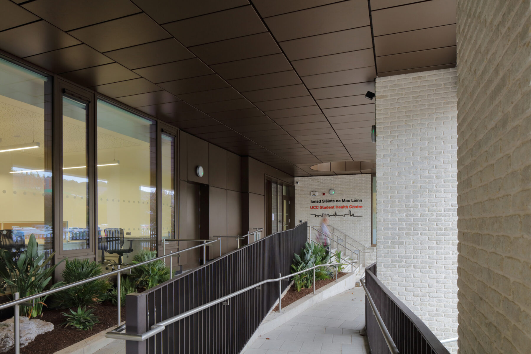 The Crow’s Nest development houses student accommodation, common social facilities, a university health centre and retail uses to activate the perimeter streets. The project creates a new gateway, a landmark building at this key junction in Cork, marking the entrance to the historic urban core of the city. The massing engages with the Cork vernacular of tall elements (church spires and towers), viewed against the city hillsides and ridges, five taller blocks rising from a podium garden.